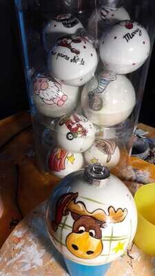 Sfera di Natale in Vetro Personalizzata Soggetti Babbo Natale, Gnomo, Alce, Pupazzo di Neve